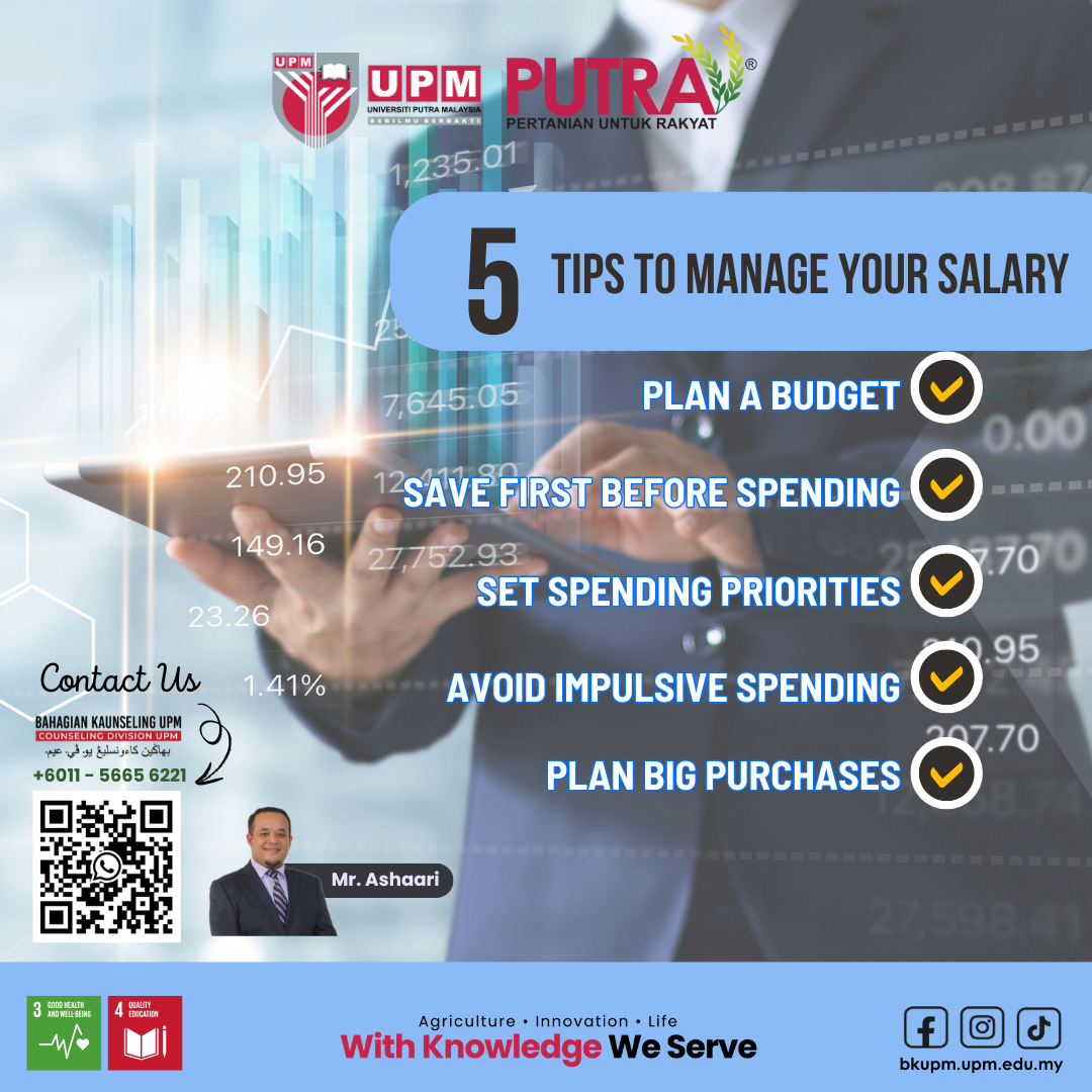 By practicing the above guidelines, it is hoped that you will be able to spend your salary wisely, save money, and achieve long-term financial stability.